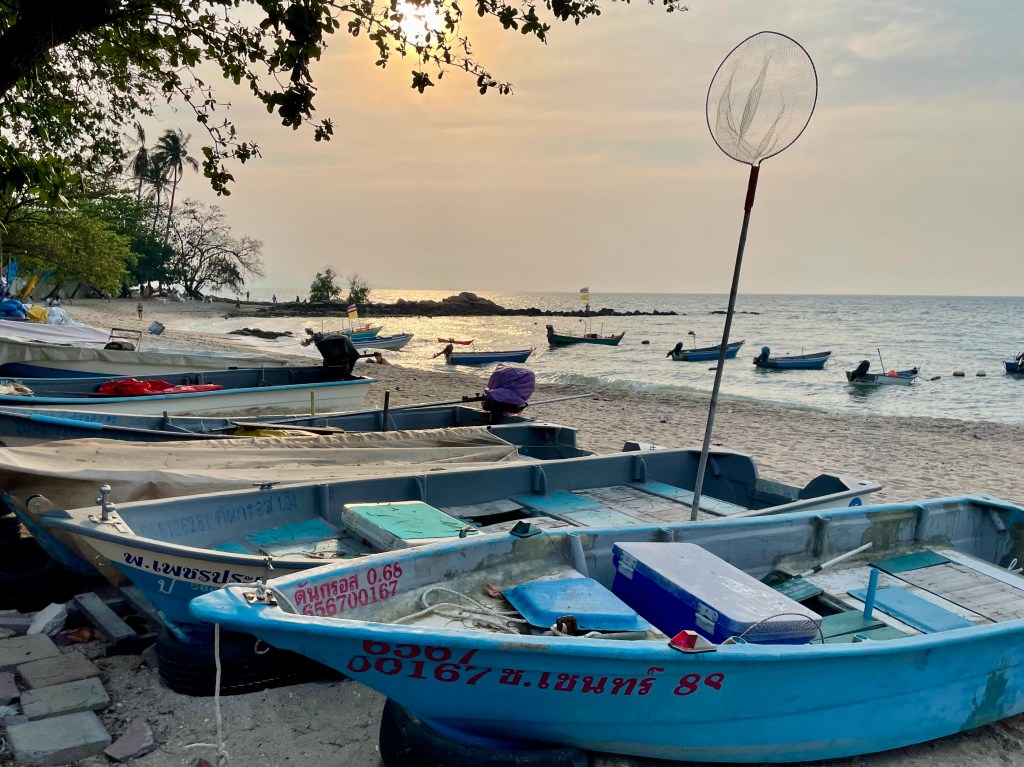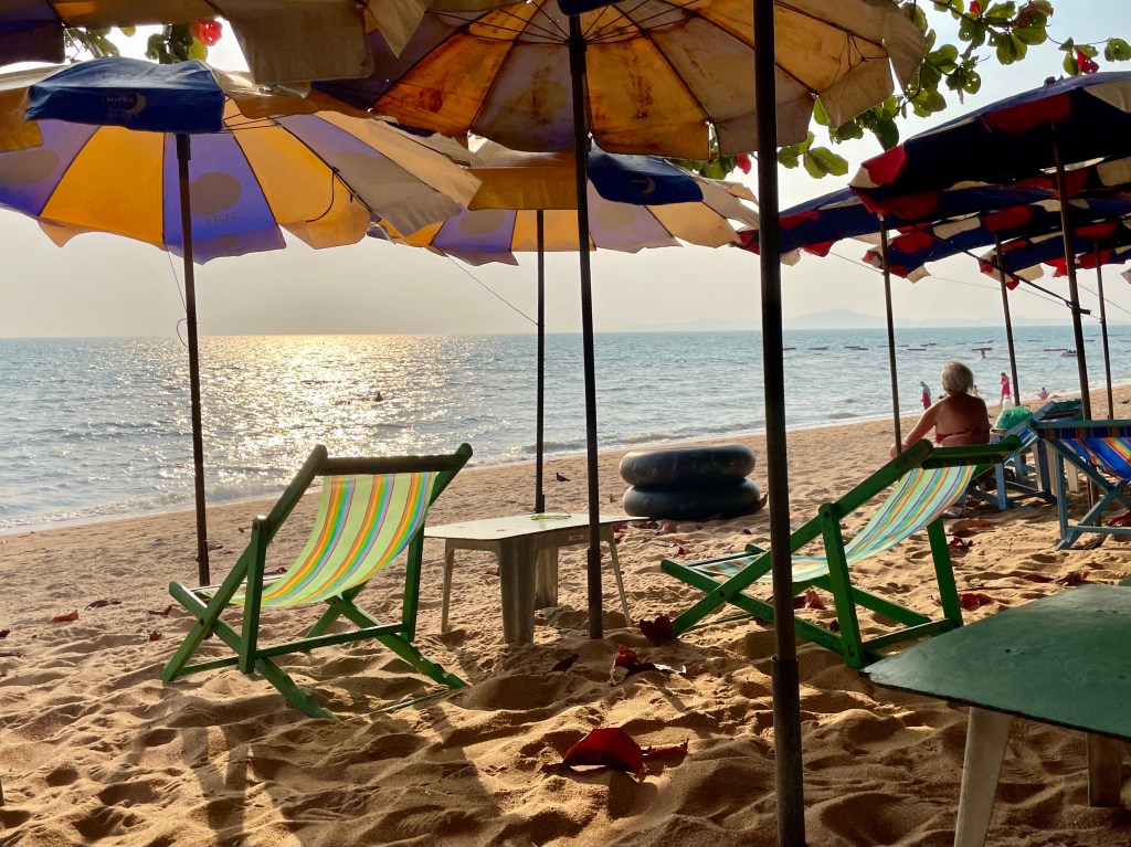 Our hotel was literally a stone’s throw from a lovely beach at the north end of the main Pattaya beach that had a roped-off area for swimming with lifeguards on duty. A morning swim is recommended. The water temperature (28 degrees Celsius) is significantly warmer than the Atlantic coast in Portugal! The sunsets are gorgeous, and we spent time in the evening playing cards on the beach. When the sun goes down a lot of Thai families gravitate to the beach giving it a nice atmosphere.