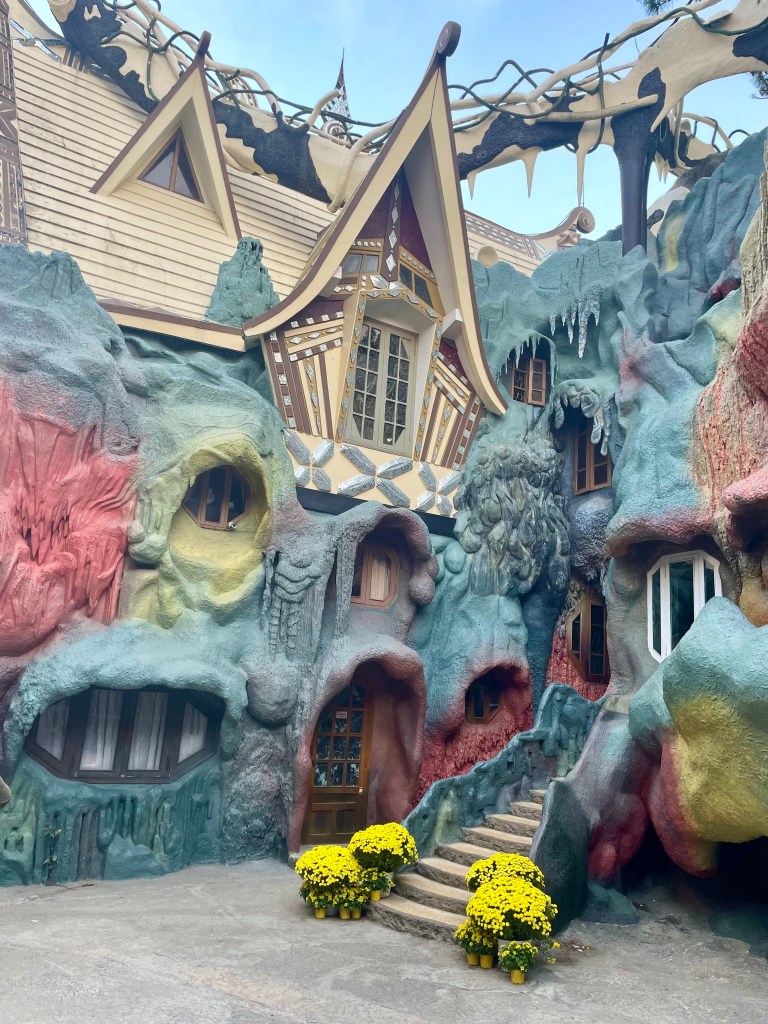 The Crazy House (official name Villa Hang Nga) is one of the most popular tourist attractions in Da Lat. When we visited a coach unloaded its tourist cargo and gave them a set time to look around. This is anathema to us. We like to take our time and absorb what we are seeing.