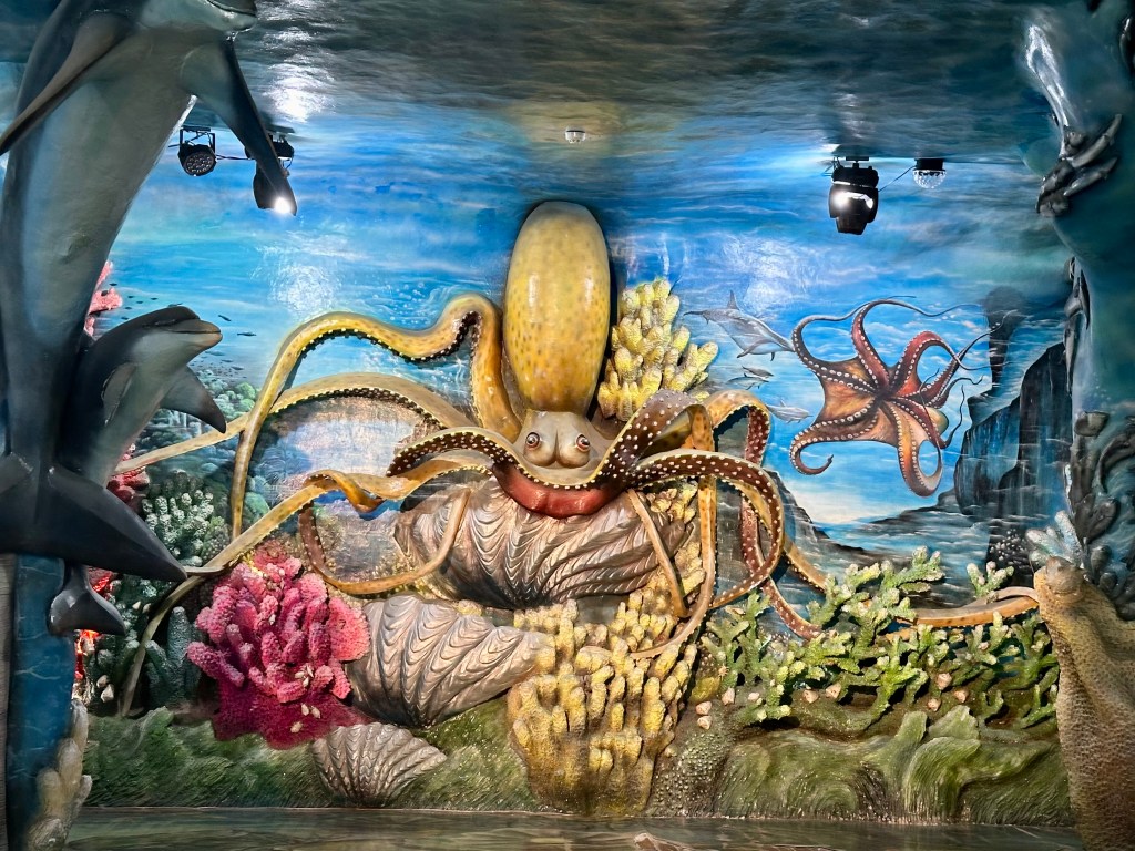 The concept of this fairytale house was to bring people closer to nature. The central structure is a tree. But what a tree! Snakes for banisters, giraffes and a whole host of natural creatures and flora appear somewhere. Our favourite section involved sea creatures which revealed itself from behind a giant shell. This is an architectural masterpiece, with shades of Gaudi’s Sagrada Familia, Dali and Disney. You can actually stay in the house as it is a one-star hotel, but without much privacy until tourists depart at 7 pm. Stunning and crazy at the same time, it cost around £5 per person to enter