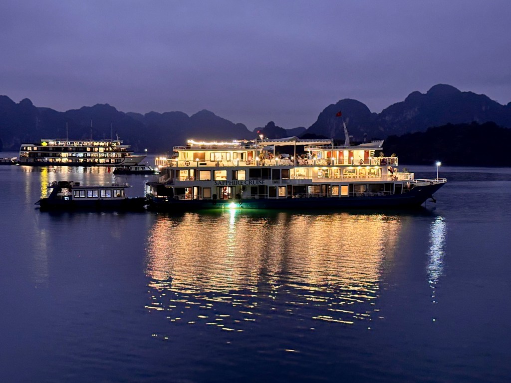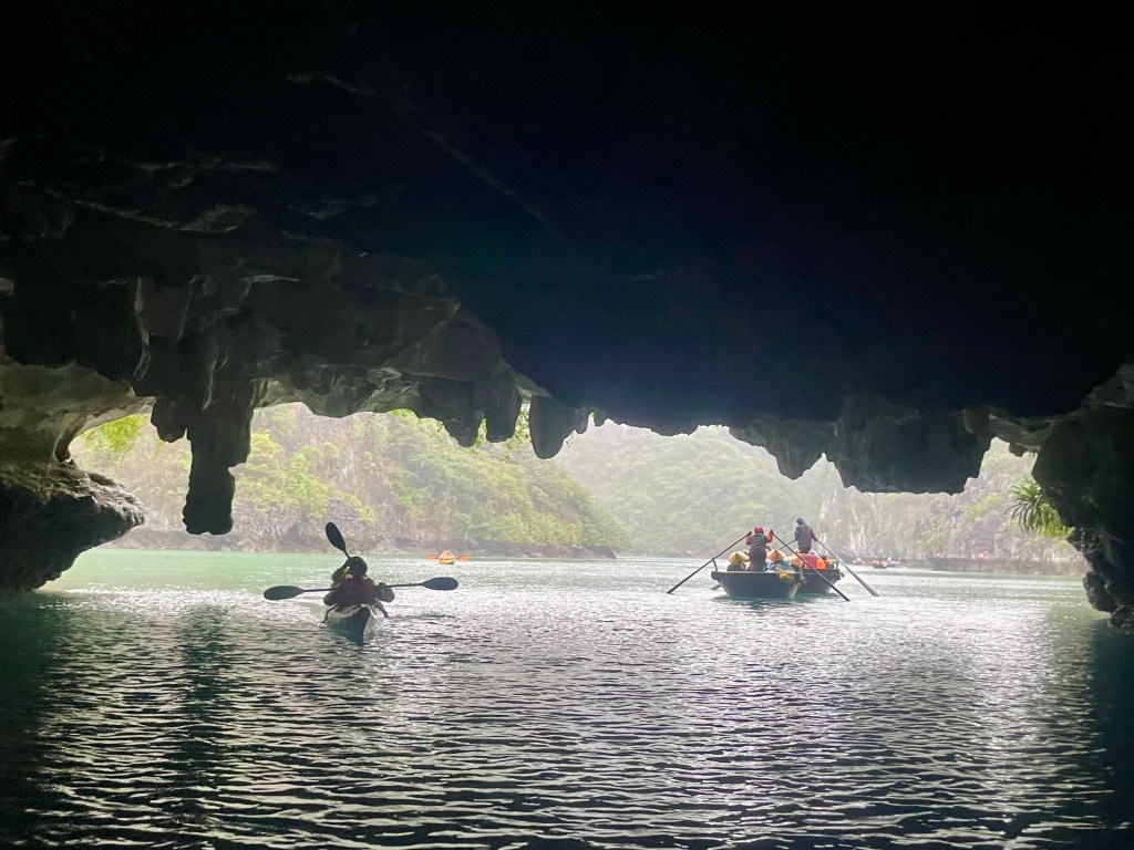 It was an early start from Hanoi, around 0830 and there was a lot of waiting around. On both the outward and return journeys, all tours stop for 30 minutes to give you the opportunity to buy a coffee, or if you were feeling extravagant, a pearl necklace, earrings, pendant etc. On entering the harbour we had a 30 minute wait for our tender boat and a 45 minute journey to our ship. On arrival we had lunch and an introduction to the events over the next two days.