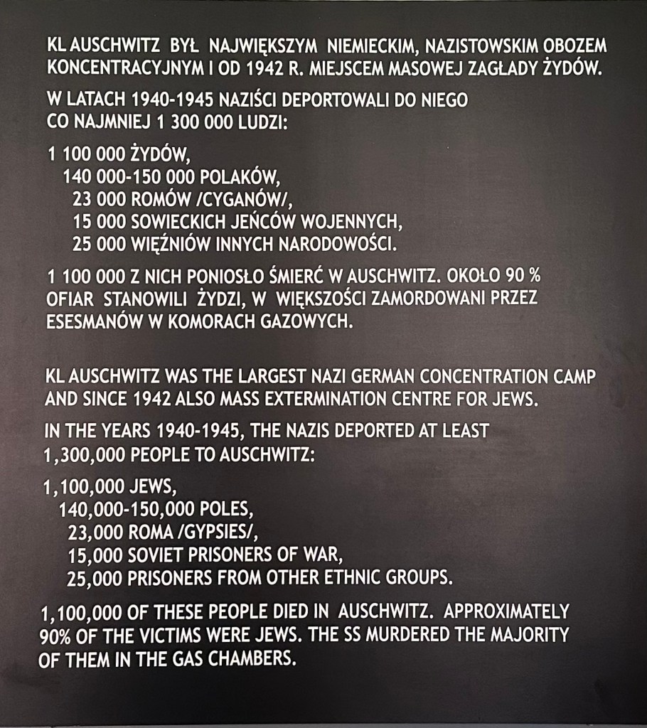 We first visited Auschwitz, which was both a concentration camp and death camp. Birkenau was almost exclusively designed as a death camp. As you would expect it was a quiet and subdued group of visitors. We had the same guide for both sites and our guide, Michal, kept us on the move as he was clearly on a strict timetable. We did not have time to read most of the information boards, particularly at Auschwitz. The exhibit that I found most moving was the mountain of shoes removed by people prior to them entering the “showers”. While we were glad to have visited, other sites such as The Eagle Pharmacy and Oskar Schindler’s Enamel Factory were more personal as they featured first-hand accounts from people who were there. At Auschwitz and Birkenau it was death on an industrial scale and hard to comprehend.