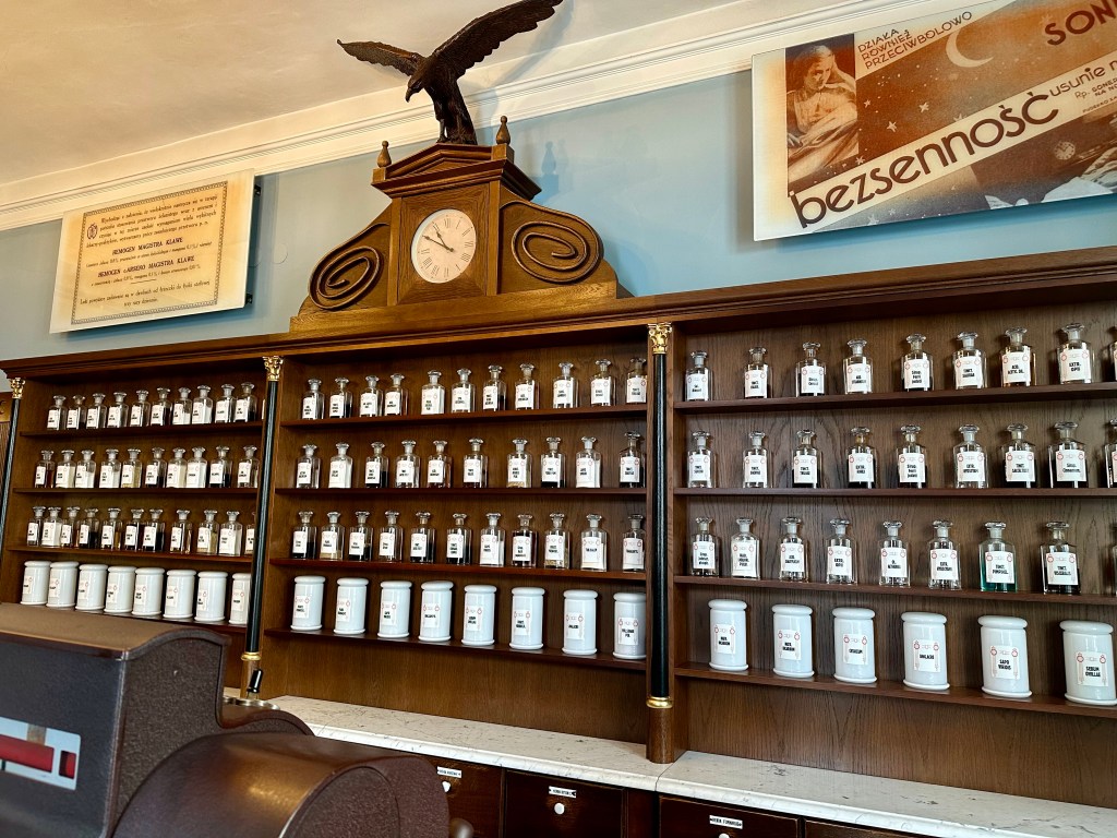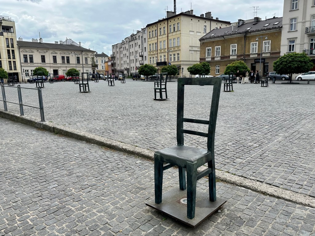From 1941 to 1943 a closed Jewish ghetto was established in Krakow. The only non-Jewish establishment in the ghetto was this pharmacy, run by a Polish non-Jew, Tadeus Pankiewicz, who, along with his Polish co-workers, actively helped and supported the ghetto inhabitants. This is a small museum with interesting exhibits and photographs, and well worth an hour or so to explore. Outside the pharmacy is Ghetto Heroes Square with empty chairs situated on it, each representing 1,000 Jewish inhabitants of Krakow.