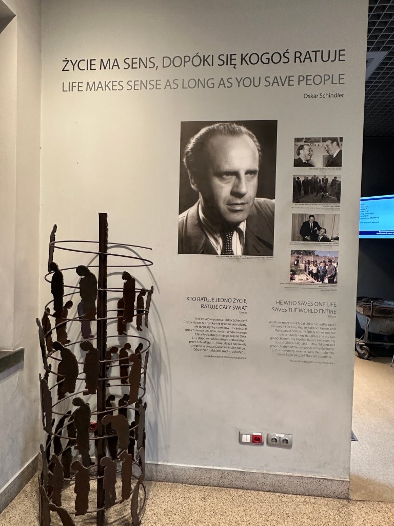 Secondly, there are many guided tours available. The benefit is that if you get a good guide, they will be able to add more colour and anecdotes. However they move through the exhibits at a pace. We chose to make our own way through the museum and spend time in areas we wanted to spend time in. The corridors are narrow in places and at least two English-language tours passed us, so we got to hear quite a lot of commentary. So what is it like? It was not what we expected. It’s not really a factory at all, all equipment being relocated to Brunnlitz, in the Czech Republic in 1944. Yes there is some information about Oskar Schindler, but much more about life under Nazi occupation in WWII for both Poles and Jews, the fate of the Enamel factory and the Jewish workers he saved. Really informative, well presented and a must when visiting Krakow.